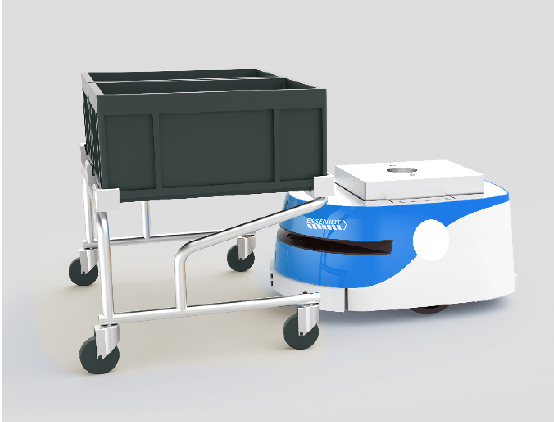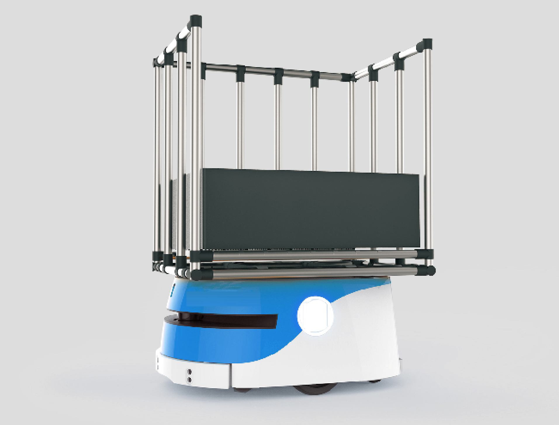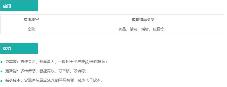 醫用搬運機器人專爲醫院物資傳送設計,高度集成(chéng)機電一體化、多維傳感、人工智能(néng)、數字通訊,以醫院物資供應鏈管理雲平台進(jìn)行調度,既能(néng)和中型物流傳輸系統無縫對(duì)接實現平層物資的接駁傳輸,也能(néng)承擔大量物資的運輸,應用于像消毒供應室、手術室、靜配中心、庫房、藥房内的物流微循環。