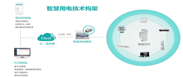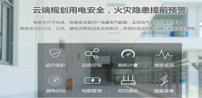 智能(néng)空開(kāi)可快速、高精度采集用戶海量電氣數據,實現電氣安全和能(néng)耗管理,根據設定的過(guò)壓、過(guò)流、漏電流等預設安全控制點,異常時自動切斷回路,實現安全用電。