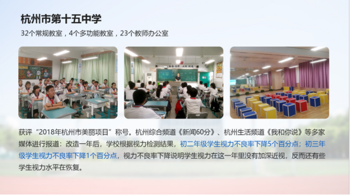 爲了給學(xué)校提供符合用眼衛生要求的照明環境,落實教室、宿舍、圖書館(閱覽室)等采光和照明要求,我們需要嚴格按照普通中小學(xué)校建設标準改造教室照明環境,使用利于視力健康的照明設備,讓學(xué)校教室照明衛生标準達标率實現100%的達标率。