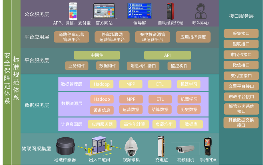 公衆服務層爲車主用戶提供各類應用服務,包括手機 App、微信公衆号、集成(chéng)于支付寶或微信等城市服務窗、停車誘導屏顯示、自助繳費終端、呼叫(jiào)中心服務等。